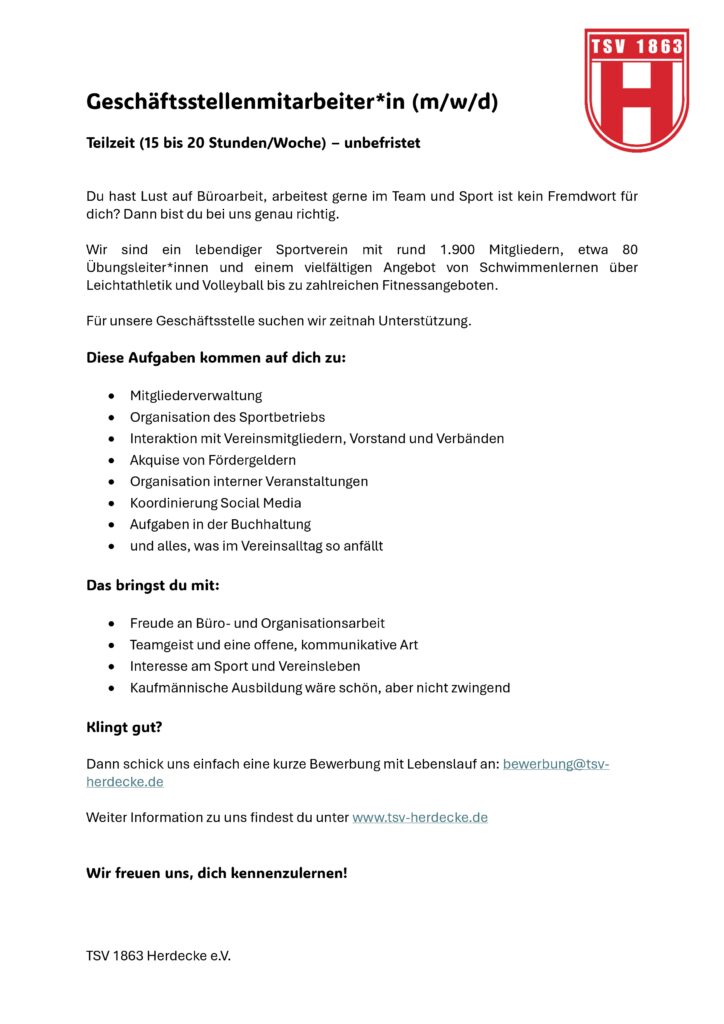 Wir, TSV 1863 Herdecke e.V. (Vereinssitz: Deutschland), verarbeiten zum Betrieb dieser Website personenbezogene Daten nur im technisch unbedingt notwendigen Umfang. Alle Details dazu in unserer Datenschutzerklärung.